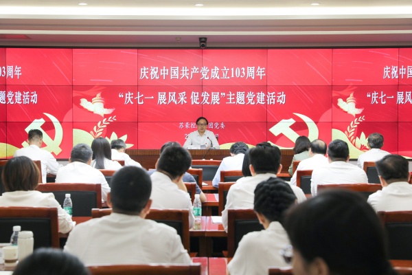 為慶祝中國(guó)共產(chǎn)黨成立103周年,回顧黨的光輝歷程,謳歌黨的豐功偉績(jī),弘揚(yáng)偉大建黨精神,凝聚昂揚(yáng)奮進(jìn)力量,7月1日,蘇豪控股集團(tuán)黨委舉辦“慶七一 展風(fēng)采 促發(fā)展”主題黨建活動(dòng)。集團(tuán)黨委書(shū)記、董事長(zhǎng)周勇出席活動(dòng)并講話,集團(tuán)黨委班子成員參加活動(dòng)。紅心向黨,星耀征程?;顒?dòng)中,與會(huì)人員首先集體參觀了集團(tuán)優(yōu)秀星級(jí)黨支部風(fēng)采展示。以黨支部評(píng)星定級(jí)工作為基礎(chǔ),風(fēng)采展集中展示了集團(tuán)2023年度6家五星級(jí)黨支部和18家四星級(jí)黨支部的黨建工作成果,通過(guò)搭建互學(xué)互鑒平臺(tái),進(jìn)一步強(qiáng)化示范帶動(dòng)作用,激勵(lì)廣大基層黨組織奮發(fā)進(jìn)取、爭(zhēng)先創(chuàng)