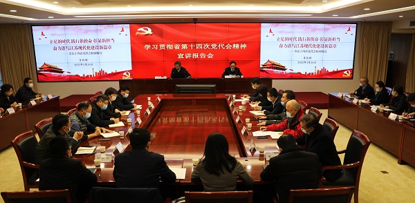 1月14日下午,在集團上下深入開展學習宣傳貫徹省第十四次黨代會精神之際,根據省委決策部署和宣傳活動安排,省發(fā)展和改革委員會黨組書記、主任李侃楨作為省委宣講團成員,專程來到蘇豪控股集團作省第十四次黨代會精神宣講。蘇豪控股集團黨委書記、董事長周勇主持宣講會,總裁魏愛春作會議小結。宣講會上,李侃楨圍繞深刻認識省第十四次黨代會召開的歷史背景,從將總書記的重要指示批示作為“主題主線”,堅持把“強富美高”新江蘇建設“一張藍圖”繪到底,堅決扛起“三大光榮使命”,圓滿交上“一份沉淀厚實的成績單”,深化發(fā)揚“五個堅持”重要