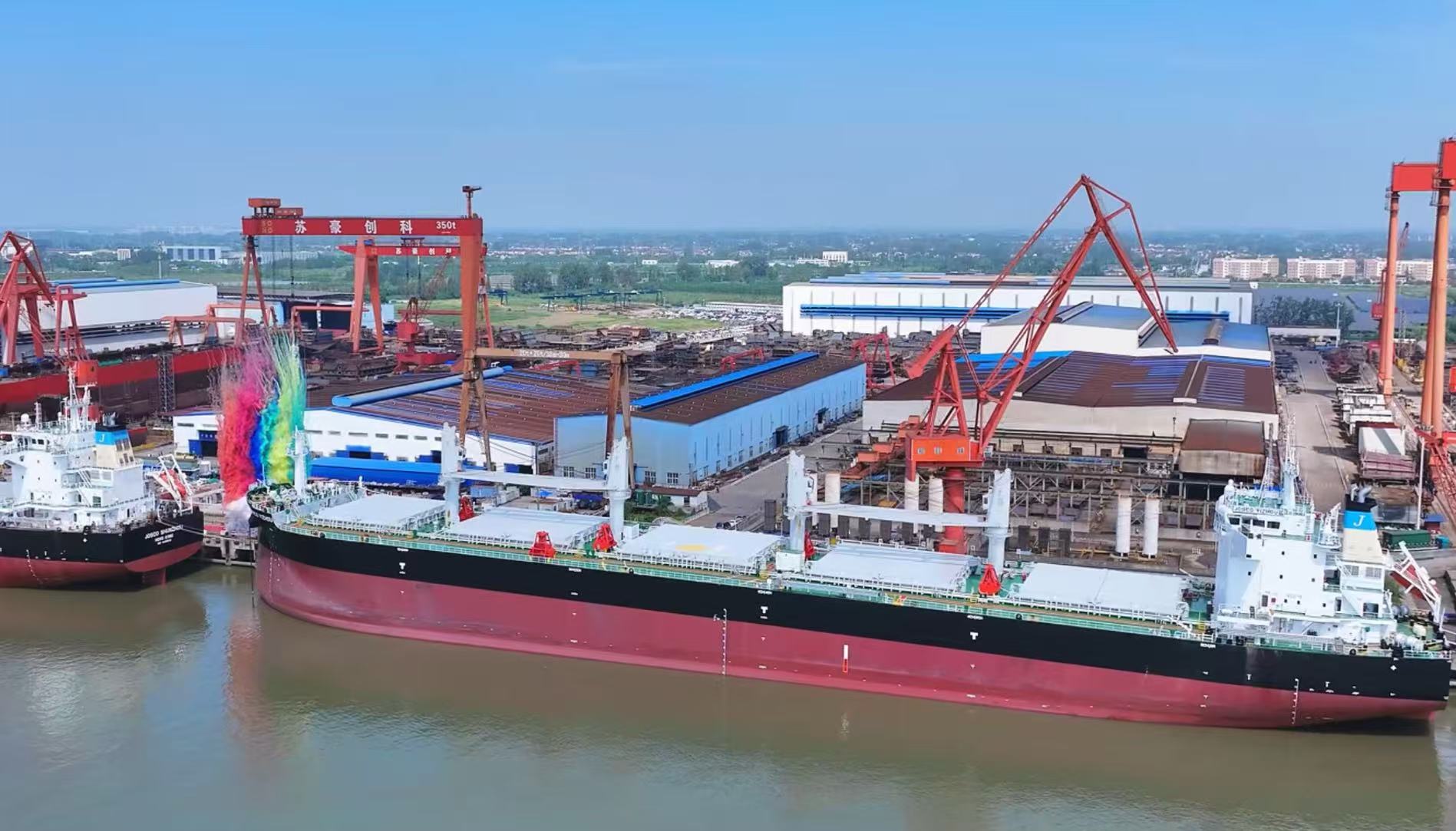 9月16日上午,蘇豪創(chuàng)科集團63500DWT散貨船首制船交船命名儀式在位于儀征江濱的蘇豪創(chuàng)科造船廠隆重舉行。由蘇豪創(chuàng)科建造的第一艘自營船舶提前交船,具有重要的里程碑意義,揭開了逐夢深藍、向海圖強的嶄新開端。
