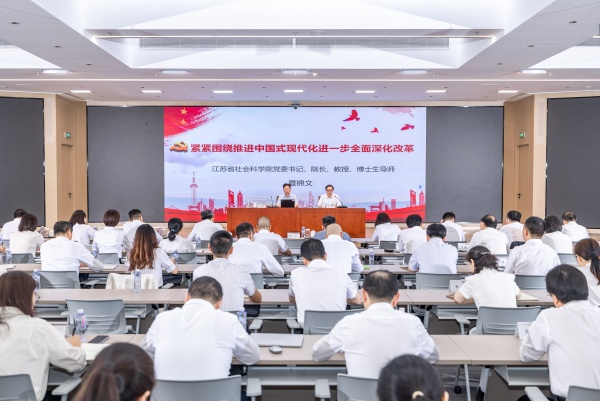 按照省委統(tǒng)一部署,8月19日,學(xué)習(xí)貫徹黨的二十屆三中全會(huì)精神省委宣講團(tuán)報(bào)告會(huì)在蘇豪控股集團(tuán)舉行。省委宣講團(tuán)成員,省社科院黨委書(shū)記、院長(zhǎng)夏錦文作專題輔導(dǎo)報(bào)告。集團(tuán)黨委書(shū)記、董事長(zhǎng)周勇主持報(bào)告會(huì)。報(bào)告會(huì)上,夏錦文以《緊緊圍繞推進(jìn)中國(guó)式現(xiàn)代化進(jìn)一步全面深化改革》為題,從深刻把握全會(huì)的重大意義,深刻把握新時(shí)代以來(lái)全面深化改革的重大成就,深刻把握進(jìn)一步全面深化改革的總目標(biāo)、重大原則和重大舉措,深刻把握黨的領(lǐng)導(dǎo)是進(jìn)一步全面深化改革、推進(jìn)中國(guó)式現(xiàn)代化的根本保證等六個(gè)方面進(jìn)行了系統(tǒng)闡述和深入解讀。報(bào)告主題鮮明,站位高遠(yuǎn),