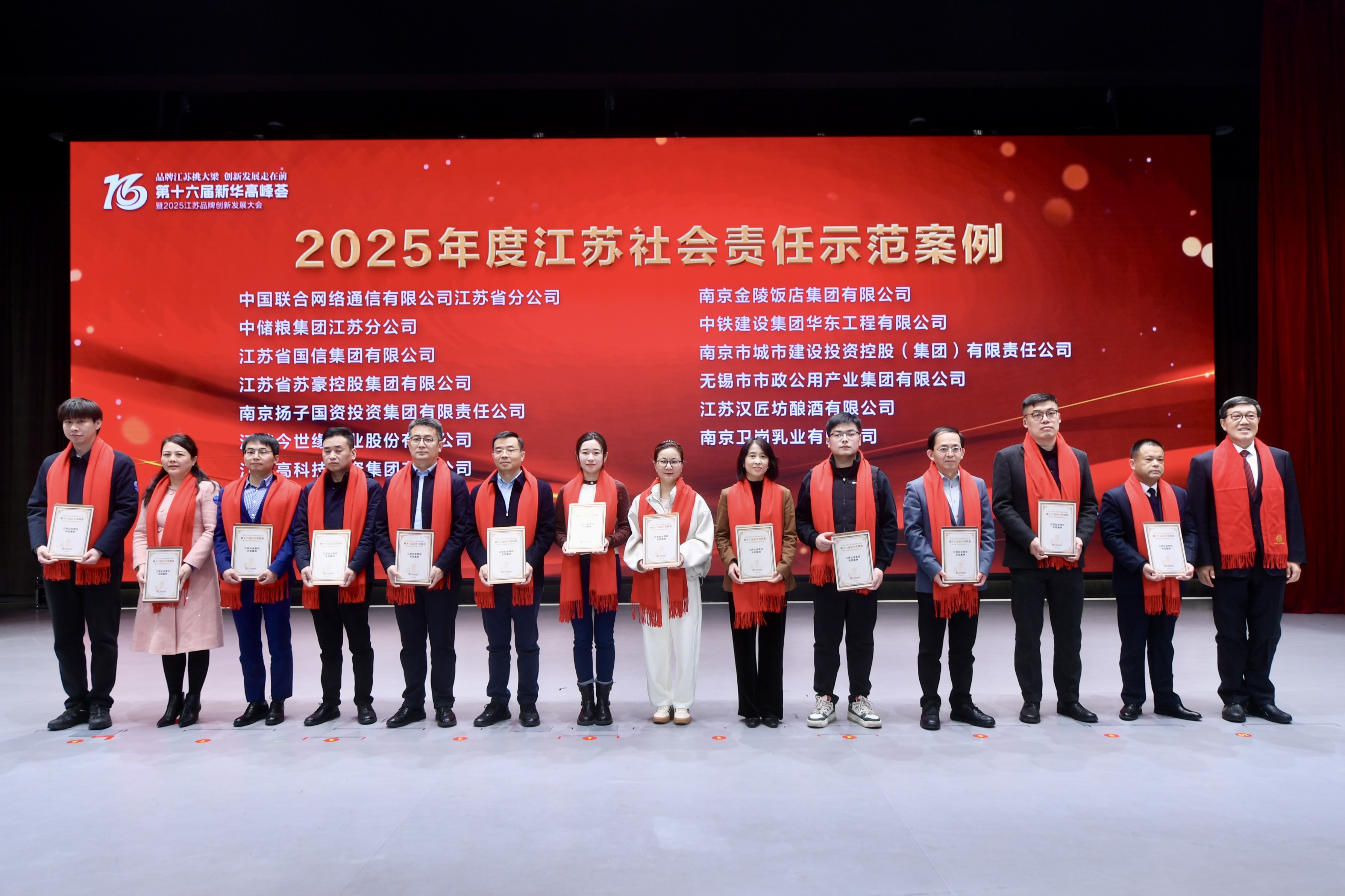 12月27日,由新華報業(yè)傳媒集團、南京銀行主辦的“品牌江蘇挑大梁 創(chuàng)新發(fā)展走在前”第十六屆新華高峰薈暨2025江蘇品牌創(chuàng)新發(fā)展大會在南京舉行。江蘇省政協(xié)副主席姚曉東出席致辭并向“新華致敬·江蘇社會責(zé)任”示范案例入選企業(yè)頒發(fā)榮譽證書。江蘇省各廳局、地方政府部門、縣市(區(qū))相關(guān)負責(zé)人,江蘇品牌企業(yè)家代表、行業(yè)專家等齊聚一堂,共探品牌建設(shè)路徑,共話創(chuàng)新發(fā)展新機。集團黨委副書記陳萬寧應(yīng)邀參加活動。